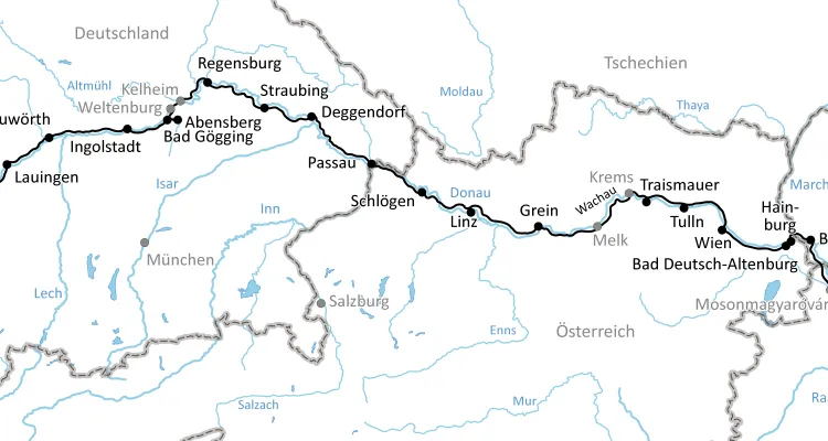 Donaueschingen – Passau – Vienna – Bratislava – Budapest