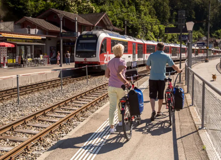 Switzerland also shines as a role model here: There is hardly a better-developed public transport network. If you don't feel like cycling on a certain stage or the weather doesn't cooperate, you can switch to buses, trains and, in sections, boats along the entire route. Bicycles can be sometimes taken along in the post buses.