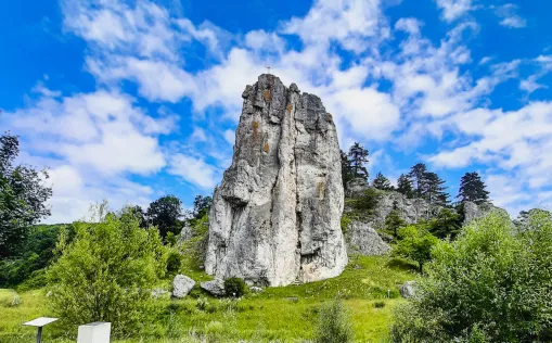 This trip on the Altmühl Cycle Path takes you from romantic Rothenburg ob der Tauber to where the Altmühl flows into the Danube. The destination is Regensburg, one of the most beautiful major cities in Germany. You will cycle past rock formations such as the Twelve Apostles, through juniper heaths and along the shores of the Franconian Lake District. You can arrange the program of the cycling tour on the Altmühltal cycle path in a variety of ways: Explore Rothenburg with a night watchman, visit a stalactite cave along the way, encounter the prehistoric bird Archaeopteryx, cross the Limes - the former fortified border of the Roman Empire - and taste a quaffable beer in the oldest monastery brewery in the world. The tour on the Altmühl Cycle Path is rounded off with a boat trip through the Danube breakthrough to Weltenburg Monastery.