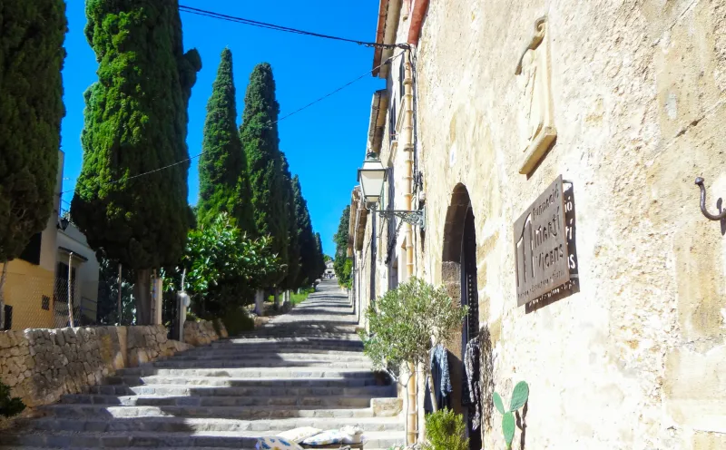 Firstly via the typical island villages of Son Carrió and Sant Llorenc, with the 13th century church of Santa Maria del Bellver, through the picturesque hinterland of the island. Beautifully laid out paths lead to Artà. Numerous alleyways lead up the hill on which the small town was built. From the pilgrimage church of Sant Salvador, you can enjoy