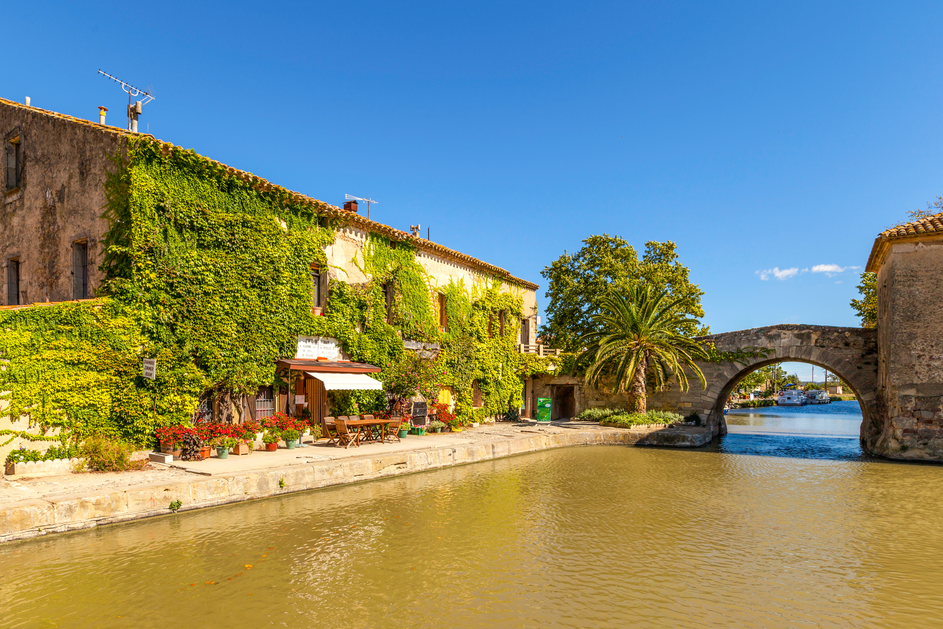 Today's stage of your cycling holiday along the Canal du Midi takes you closer to the Mediterranean, kilometer by kilometer. The day's destination is Narbonne on the Canal de la Robine. Visit the cathedral, which can be seen from afar and is an architectural masterpiece. Remnants of the Romans are also still visible in many corners of the city. You can learn more about this period in the Narbo Via museum. Or how about a walk across the Pont des Marchands, a bridge of houses?