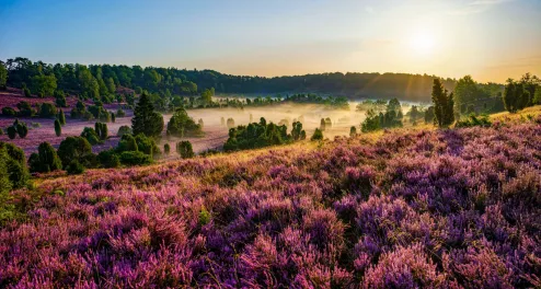 In the morning the train takes you on a 15-minute trip to the town of Soltau. Worthy of a visit here are the various churches, the town hall and also a toy museum, which shows exhibits from over four centuries. On the way back to Schneverdingen, you encounter the historic site of Wieheholz. Through the southern Osterheide and the woods around Böhnheide, your route takes you back to your starting point.