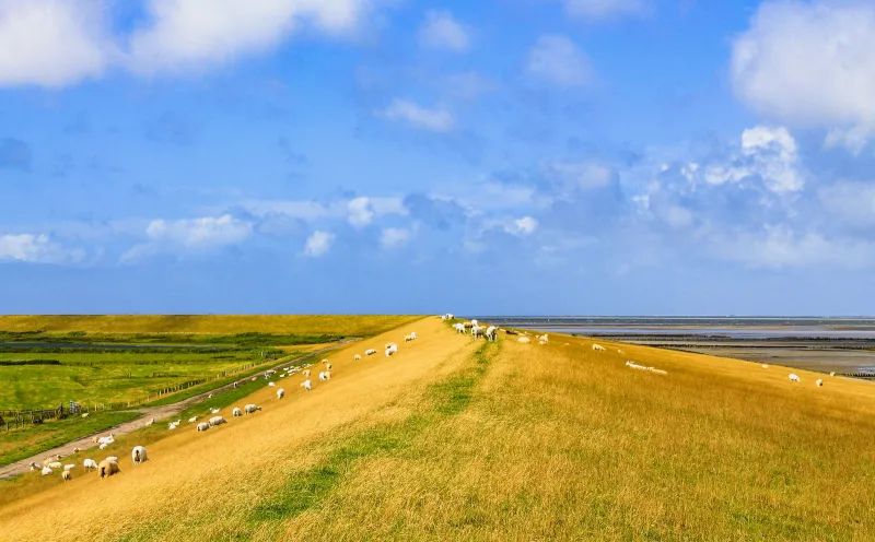 More sea, please! Our great cycling vacation on the North Sea between the German-Danish border and the Hanseatic city of Hamburg offers you the all-round package for an eventful and relaxing stay on the Wadden Sea coast. The play of the tides, grazing sheep on seemingly endless dykes, as well as small secluded harbor villages and old windmills, are just as much a part of our cycling vacation on the North Sea as delicious fish sandwiches and a chat with the friendly North Frisians. Let the healthy, salty sea air blow around your nose when you take a trip to the green island Föhr and the Hallig Hooge, get to know the islands of Sylt and Rømø, and cycle around the small southern Danish town of Tønder. In Husum, you will discover that the town is anything but gray, and it is easy to enjoy Dutch flair in Friedrichstadt. Our cycling vacation on the North Sea offers a contrasting program with a trip to St. Peter-Ording. The well-known seaside resort has a beautiful sandy beach that stretches for miles and leaves nothing to be desired for sun worshippers and sports enthusiasts alike. Cycle along the North Sea coast to Büsum, famous for its crab fishing. Inland, you will reach the Kiel Canal and the Elbe, which will take you past Glückstadt and into the heart of Hamburg, via Dithmarschen, which is characterized by marshland and geest areas.