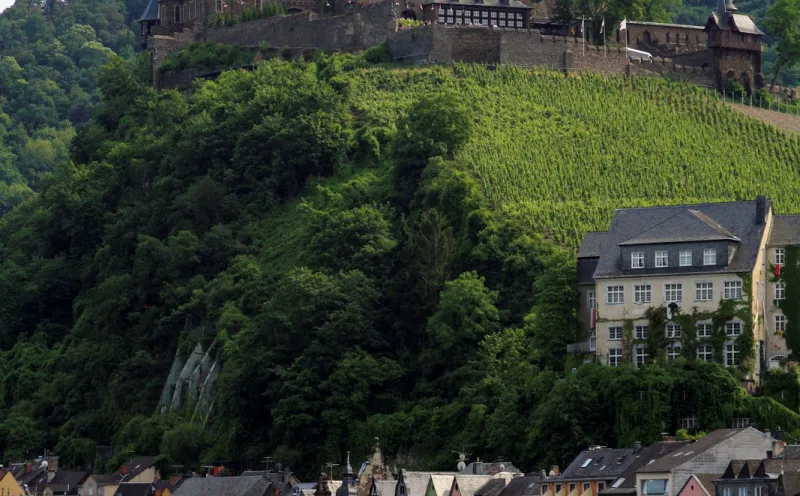 Discover the pretty town of Enkirch with its numerous half-timbered houses on your cycle tour along the Moselle today. You then cycle around the Zeller Hamm, a narrow Moselle bend, and past Bullay, the former Free Imperial City. The romantic Arras Castle, built on a hilltop, sits enthroned on the opposite bank of the Moselle. The former imperial castle complex is now home to the only castle hotel on the Moselle. You can see the Reichsburg, the landmark of the town of Cochem, from afar. The climb is worth it, as you will be rewarded with a unique view over the town and the Moselle.