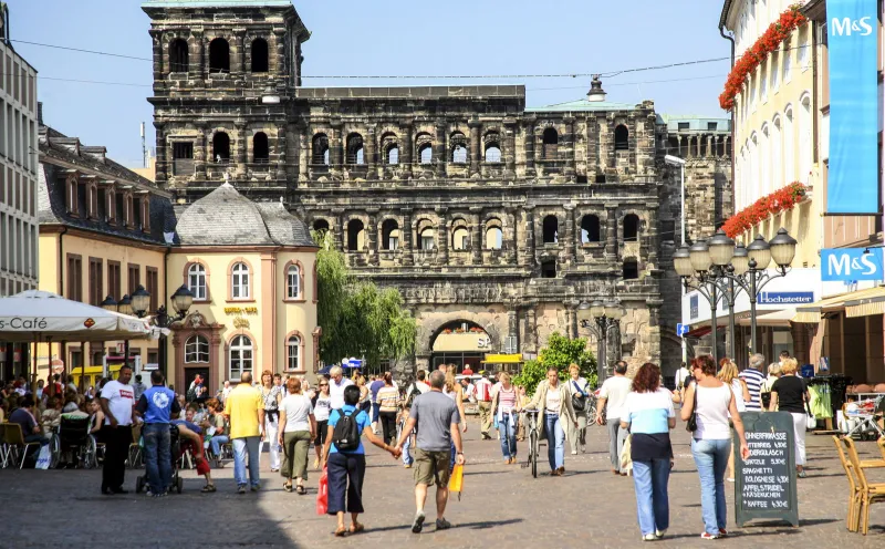 Before you set off on the next stage of your cycle tour along the Moselle, it is worth making a detour to Villa Borg. Experience and feel Roman history up close in the gardens and tavern. Then continue cycling at a leisurely pace and enjoy the view of the vineyards that accompany you on both sides of the riverbank. You will soon reach Treves, the oldest city in Germany. Take plenty of time to visit the numerous sights. The Porta Nigra, the amphitheatre and the Imperial Baths are just some of the highlights that you should not miss out on.