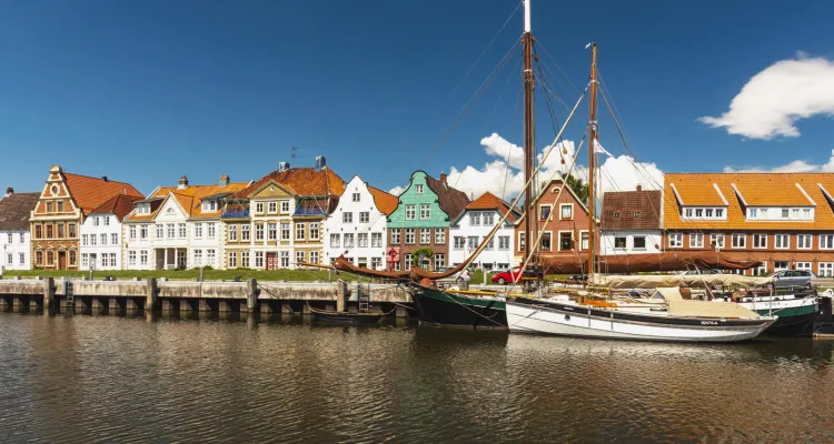On we go! Now in Schleswig-Holstein, you will cycle through Elmshorn, the matjee town of Glückstadt, and Brunsbüttel, which is characterized by its location on the Kiel Canal. Say goodbye to the Elbe for a few kilometers and cycle through the Dithmarschen via St. Michaelisdonn and Meldorf back to the North Sea. Taste freshly caught crabs in Büsum, cross the Eider Barrage – Germany's largest coastal protection structure - and enjoy relaxing moments on the 12-kilometre-long sandy beach in St. Peter-Ording. Welcome to North Frisia! Via the Eiderstedt peninsula, you reach the colorful harbor town of Husum. You cycle around the Nordstrand peninsula and follow the cycle path along the North Sea to Dagebüll. From Dagebüll you can reach the North Frisian islands of Föhr and Amrum as well as the Hallig Hooge by ferry. A little away from the North Sea, you will get to know the climatic health resort of Niebüll. Combine your stay in Niebüll with a trip to the island of Sylt. The expressionist painter Emil Nolde once lived and worked in Seebüll, a few kilometers to the north, and the Emil Nolde Museum is dedicated to him. In the nearby village of Rosenkranz, you will reach the German-Danish border.