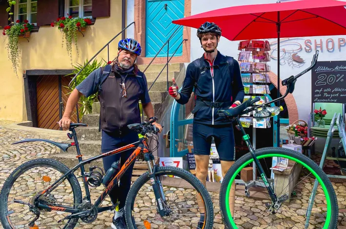 With Basel you leave the border triangle in a northerly direction. Away from the Rhine, you pedal hard to Müllheim and Badenweiler. Müllheim is considered the wine capital of the Markgräflerland region. Thanks to the warm climate, sun-drenched white wines thrive on countless vineyards. In nearby Badenweiler, the use of thermal springs has a long tradition. The Romans already used the healing effect of the warm springs. Baden Castle towers high above the town. From the restored keep you have a wonderful view over the Rhine plain and the Black Forest.