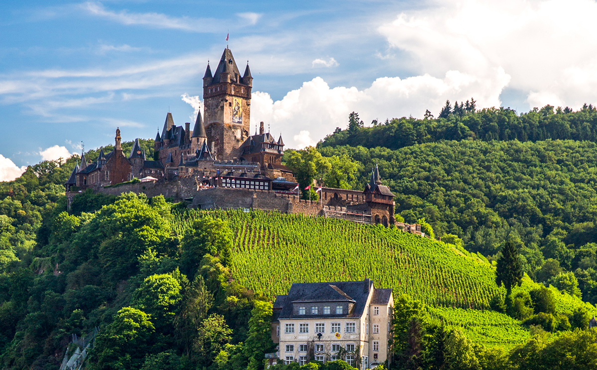 Continuing along the winding Moselle, you’ll reach Cochem. Here the imposing Reichsburg Castle shapes the skyline. With over 1,000 years of history, Cochem is a town steeped in heritage. For a stunning view of the town and the valley below, take a ride on the Cochem chairlift to the Pinnerkreuz viewpoint, offering a panoramic perspective of this charming region.