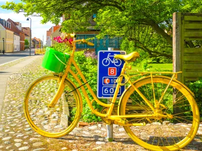Today we cross the Lillebelt (= Little Belt) by ferry and the final highlight awaits us in Sonderborg: the Tour de France. Although it has not yet begun on June 9, 2022, it will start in Copenhagen in a few days' time. And the whole of Sonderborg, the finish of stage 3, is eagerly awaiting it. Children's drawings of the cyclists are on display. And now the yellow-painted bicycles everywhere suddenly make sense.
