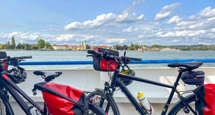 We started the bike tour to Meersburg and Lindau at 8.00 am to catch the last ship in Lindau at around 4.00 pm. The cycle paths were impressive and well signposted along the entire route. It was a very beautiful cycle route throughout, with vineyards on one side and the lake on the other. The sky was blue and the idyllic and vibrant towns enchanted us with their café life, which we also enjoyed. The boat trip back to Constance took three hours - a calm and peaceful journey, during which we saw the impressive Meersburg and Friedrichshafen from the lake side.