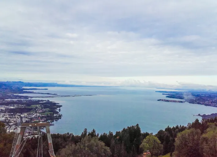 With the sky clearing again, we took the cable car up to the Pfänder and enjoyed the view of the lake and mountains. Then we went via the mouth of the Altrhein and St. Margarethen to Altstätten, where the cog railroad took us to Gais in Appenzellerland in 20 minutes.