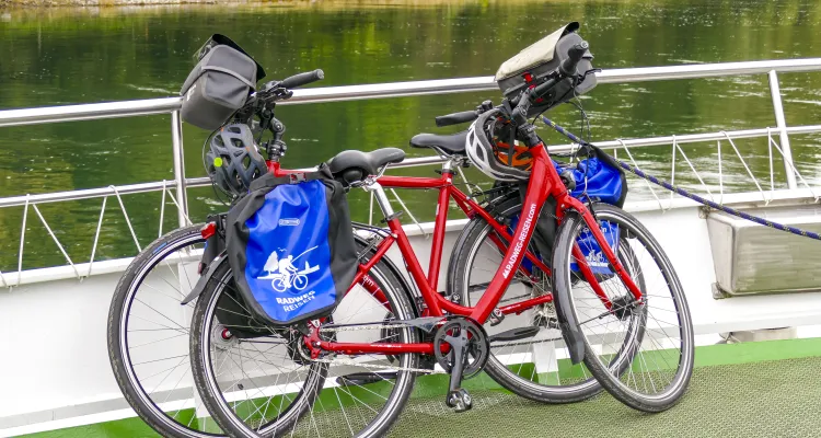 Despite a brief moment of shock - she had fallen during a walk on the way there and injured her knee - we picked up our ordered bikes in Constance the next day full of joyful anticipation. Without wishing to flatter - we felt that we were well looked after right from the start! It's not just the friendly welcome that's worth mentioning, a bike change requested at short notice was also carried out without any problems, and so after a night in the very nice Hotel Halm, we actually set off.
