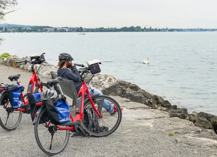 Raymond and Alexander opted for our classic Lake Constance bike tour when looking for a father-son vacation. They enjoyed the time on their bikes, the peace and quiet in idyllic places and many an exciting highlight, such as a visit to the Rhine Falls in Schaffhausen.