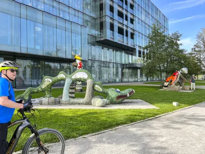 Immediately after breakfast, we set off towards Switzerland and crossed the border at Gaißau. Continuing along the Swiss-Austrian border, we passed St. Gallen-Altenrhein airport, when a work of art of a special kind suddenly appeared at a noisy traffic circle full of construction sites: the Altenrhein market hall, designed by Friedensreich Hundertwasser. We descended and climbed up the building with its colorful ceramics, golden onion domes and wonderful green roof - all without paying an entrance fee.
